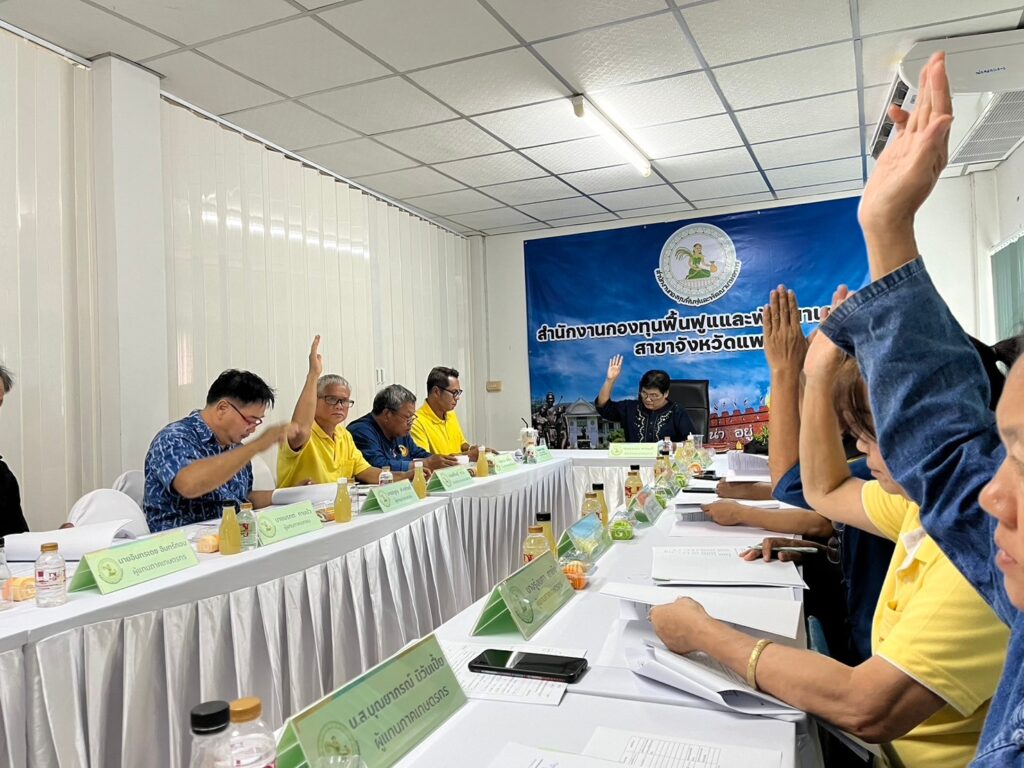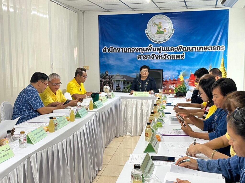 วันที่ 26 สิงหาคม 2567 เวลา 13.30 น. สำนักงานกองทุนฟื้นฟูและพัฒนาเกษตรกร สาขาจังหวัดแพร่ จัดประชุมคณอนุกรรมการกองทุนฟื้นฟูและพัฒนาเกษตรกร จังหวัดแพร่ ครั้งที่ 7/2567 เพื่อพิจารณาดังนี้ 1.พิจารณารับรองผลการขึ้นทะเบียนหนี้เกษตรกร 2.พิจารณารับรองผลการขึ้นทะเบียนหนี้เกษตรกร(หนี้) กรณีวัตถุประสงค์ไม่ใช่เพื่อการเกษตร โดยมี นางเอมอร พรหมดี ประธานอนุกรรมการกองทุนฟื้นฟูและพัฒนาเกษตรกรจังหวัดแพร่ เป็นประธานการประชุม ณ ห้องประชุมสำนักงานกองทุนฟื้นฟูและพัฒนาเกษตรกร สาขาจังหวัดแพร่ ตำบลนาจักร อำเภอเมืองแพร่ จังหวัดแพร่