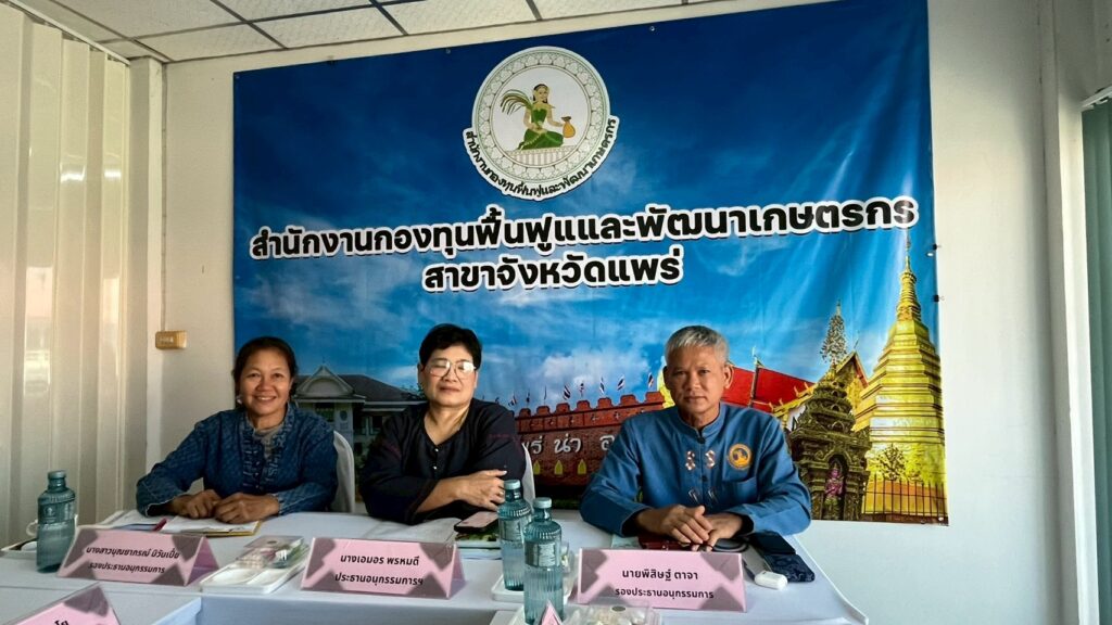 ณ ห้องประชุมสำนักงานกองทุนฟื้นฟูและพัฒนาเกษตรกร สาขาจังหวัดแพร่