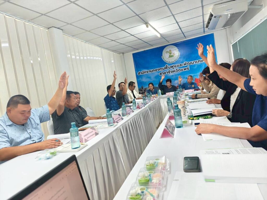 โดยมี นางเอมอร พรหมดี ประธานอนุกรรมการกองทุนฟื้นฟูและพัฒนาเกษตรกรจังหวัดแพร่ เป็นประธานการประชุม