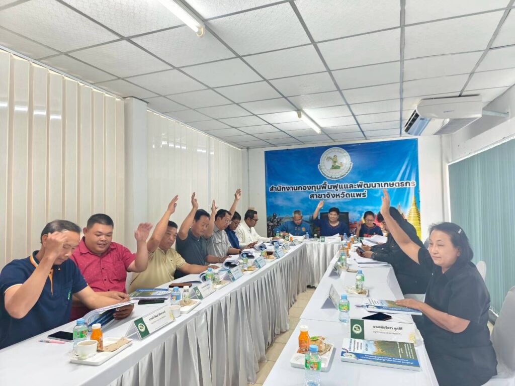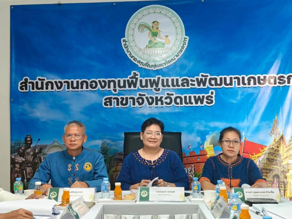 วันที่ 26 กุมภาพันธ์ 2569 สำนักงานกองทุนฟื้นฟูและพัฒนาเกษตรกร สาขาจังหวัดแพร่ จัดประชุมคณะอนุกรรมการกองทุนฟื้นฟูและพัฒนาเกษตรกร จังหวัดแพร่ ครั้งที่ 1/2569 ณ ห้องประชุมสำนักงานกองทุนฟื้นฟูและพัฒนาเกษตรกร สาขาจังหวัดแพร่ โดยมี นางเอมอร พรหมดี ประธานอนุกรรมการกองทุนฟื้นฟูและพัฒนาเกษตรกรจังหวัดแพร่ เป็นประธานการประชุม