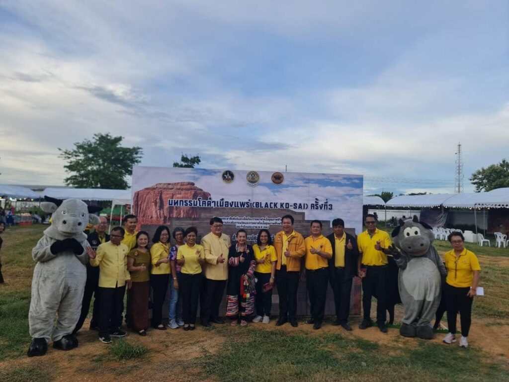 วันที่ 19 สิงหาคม 2567 เวลา 18.00 น. นายไพรัช สีวาโย หัวหน้าสำนักงานกองทุนฟื้นฟูและพัฒนาเกษตรกร สาขาจังหวัดแพร่ ร่วมงาน“มหกรรมโคดำเมืองแพร่ ( Black ko sai ) ครั้งที่ 3” ภายใต้กิจกรรมประชาสัมพันธ์และเชื่อมโยงการตลาดโคเนื้อคุณภาพดีจังหวัดแพร่ โครงการส่งเสริมการผลิตและการตลาดโคเนื้อคุณภาพดีจังหวัดแพร่ ประจำปีงบประมาณ 2567 เพื่อให้ผู้ร่วมงานได้มีความรู้ ความเข้าใจการผลิตโคเนื้อคุณภาพดีจังหวัดแพร่ โคดำเมืองแพร่ (Black Ko-sai) เพิ่มช่องทางการจําหน่ายโคเนื้อและผลิตภัณฑ์โคดำเมืองแพร่ (Black Ko-sai) ให้แก่เกษตรกรกลุ่มเกษตรกรและสถาบันเกษตรกร เผยแพร่ประชาสัมพันธ์โคดำเมืองแพร่ (Black Ko-sai) ให้แพร่หลายสู่สาธารณชน สร้างมูลค่าเพิ่มตลอดห่วงโซ่การผลิตและจําหน่าย เชื่อมโยงผู้ผลิตและผู้บริโภค สร้าง Brand โคเนื้อคุณภาพดีจังหวัดแพร่ และส่งเสริมให้ผู้ประกอบการร้านอาหารในจังหวัดแพร่ นําเนื้อโคขุนแบล็คโกศัย และผลิตภัณฑ์มาเป็นวัตถุดิบในการปรุงอาหาร โดยมี นายชุติเดช มีจันทร์ ผู้ว่าราชการจังหวัดแพร่เป็นประธานในพิธี ณ สนามกีฬาเทศบาลตำบลทุ่งโฮ้ง ตำบลทุ่งโฮ้ง อำเภอเมือง จังหวัดแพร่