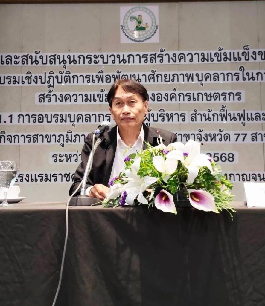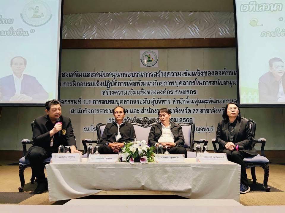 วันที่ 11 -13 ธันวาคม 2568 นายไพรัช สีวาโย หัวหน้าสำนักงานกองทุนฟื้นฟูและพัฒนาเกษตรกร สาขาจังหวัดแพร่ เข้าร่วมประชุม โครงการส่งเสริมและสนับสนุนกระบวนการสร้างความเข้มแข็งองค์กรเกษตรกร กิจกรรมที่ 1 การฝึกอบรมเชิงปฏิบัติการเพื่อพัฒนาศักยภาพบุคลากรในการสนับสนุนกระบวนการสร้างความเข้มแข็งขององค์กรเกษตรกร กิจกรรมที่ 1.1 การอบรมบุคลากรระดับผู้บริหาร สำนักฟื้นฟูและพัฒนาเกษตรกร สำนักกิจการสาขาขาภูมิภาคและสำนักงานสาขาจังหวัด 77 สาขาจังหวัด