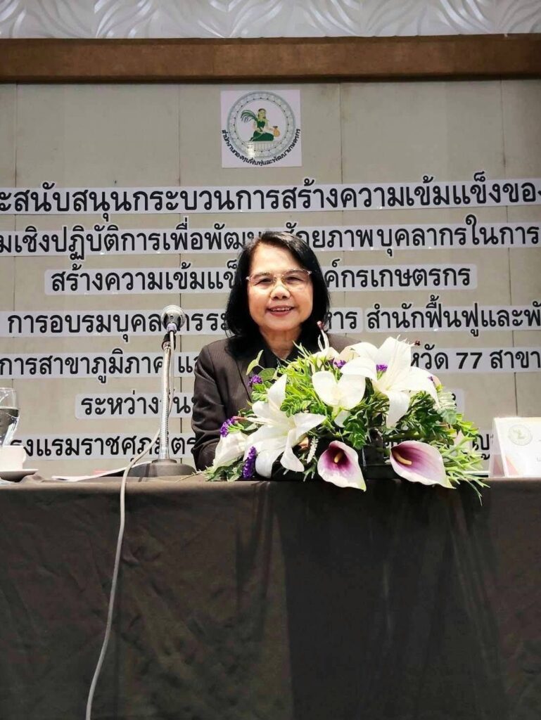 ช่วงท้ายของกิจกรรมมีการสรุปและประเมินผลการเรียนรู้ (Reflection & Commitment) เพื่อสร้างความเข้าใจร่วมและความมุ่งมั่นในการนำแผนไปสู่การปฏิบัติ ก่อนปิดการอบรมโดย นางวรรณี มหานีรานนท์ เลขาธิการสำนักงานกองทุนฟื้นฟูและพัฒนาเกษตรกร ณ โรงแรมอาร์.เอส. (ราชศุภมิตร) จังหวัดกาญจนบุรี