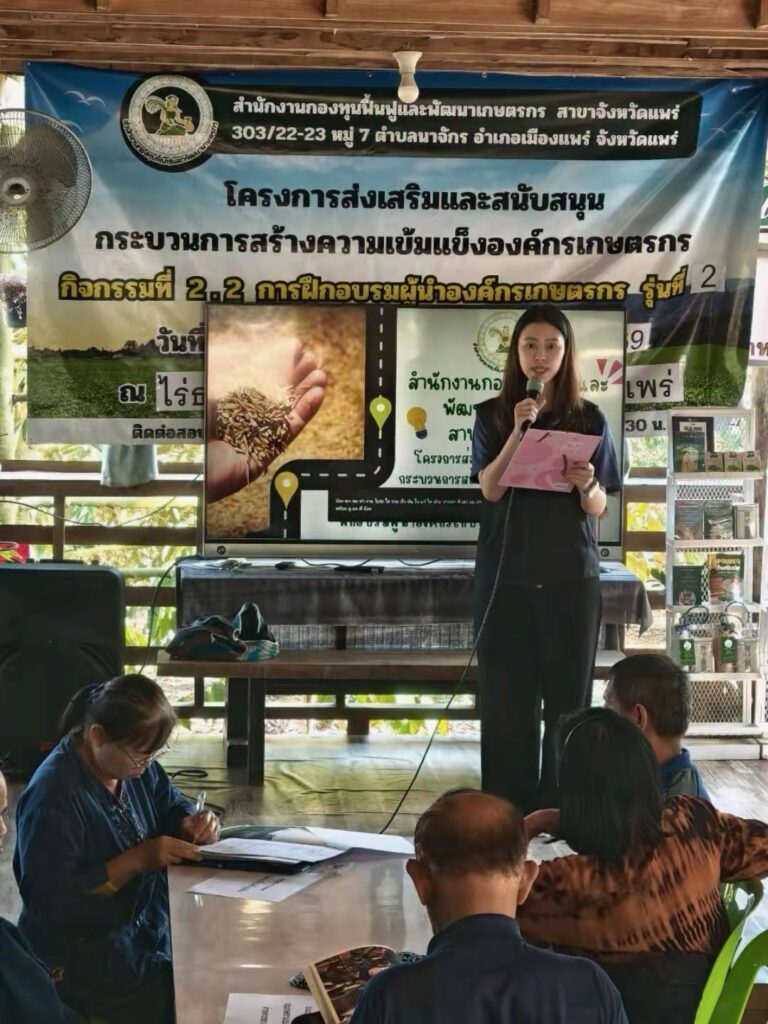 วันที่ 18 กุมภาพันธ์ 2569 นายไพรัช สีวาโย หัวหน้าสำนักงานกองทุนฟื้นฟูและพัฒนาเกษตรกร สาขาจังหวัดแพร่ มอบหมายให้ นางสาวศิรินทร์ทิพย์ กล่ำเทศ นางสาวอังคณา ดอกแก้ว ผู้ปฏิบัติงานสำนักงานกองทุนฟื้นฟูและพัฒนาเกษตรกร สาขาจังหวัดแพร่