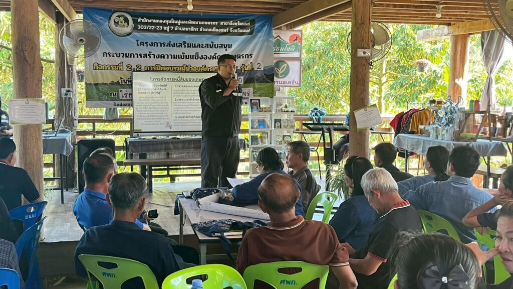 พร้อมด้วย นางสาวบุณยาภรณ์ มิวันเปี้ย รองประธานอนุกรรมการกองทุนฟื้นฟูและพัฒนาเกษตรกร(คนที่2) สาขาจังหวัดแพร่ ลงพื้นที่ติดตามเกษตรกรสมาชิกกองทุนฟื้นฟูและพัฒนาเกษตรกร (กฟก.) ที่ได้รับการชำระหนี้แทน เพื่อรับทราบสภาพปัญหา ผลการดำเนินงาน และให้คำแนะนำเกี่ยวกับแนวทางการฟื้นฟูอาชีพและการดำรงชีวิตหลังการจัดการหนี้ จำนวน 19 ราย